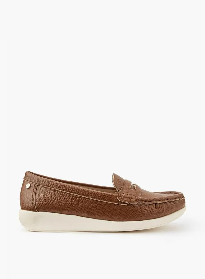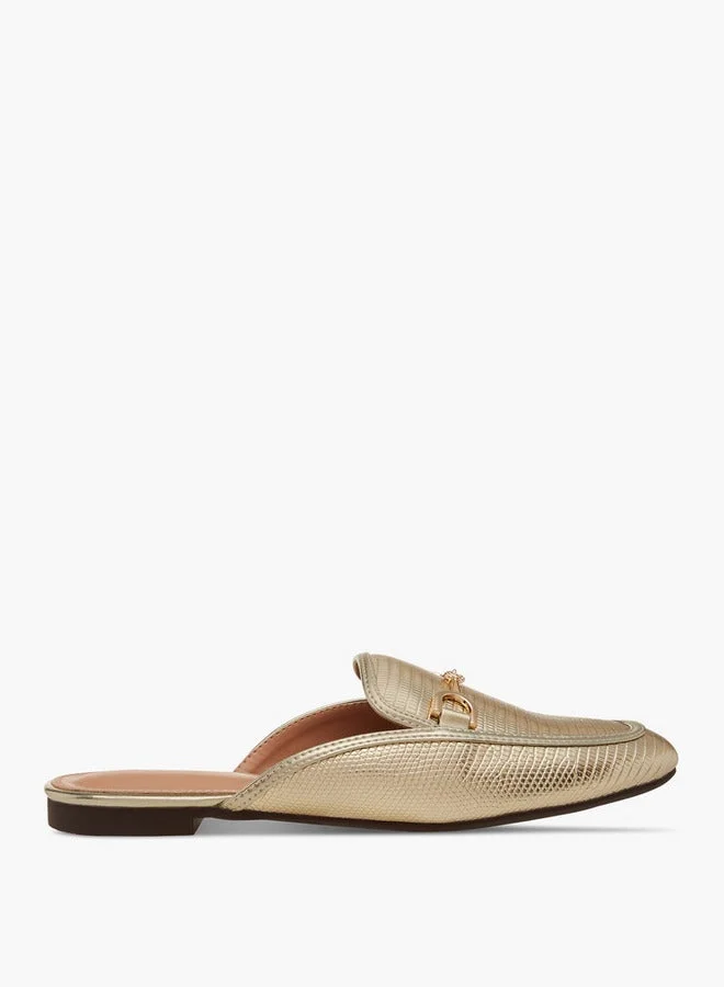 Women's Textured Slip-On Ballerina Shoes with Buckle Accent