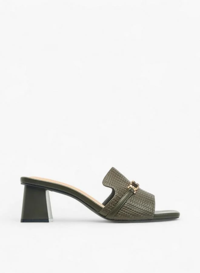 Embellished Slip-On Sandals with Flared Heel