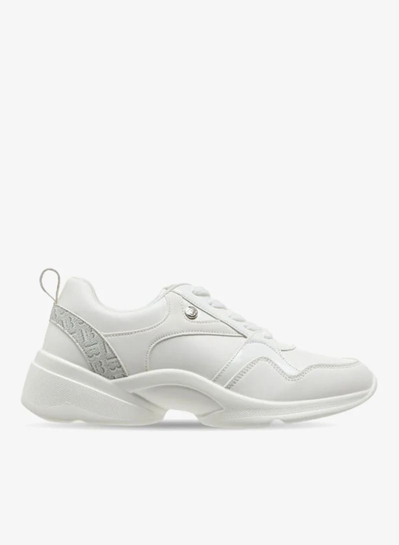 Womens Solid Chunky Sneakers With Lace-Up Closure