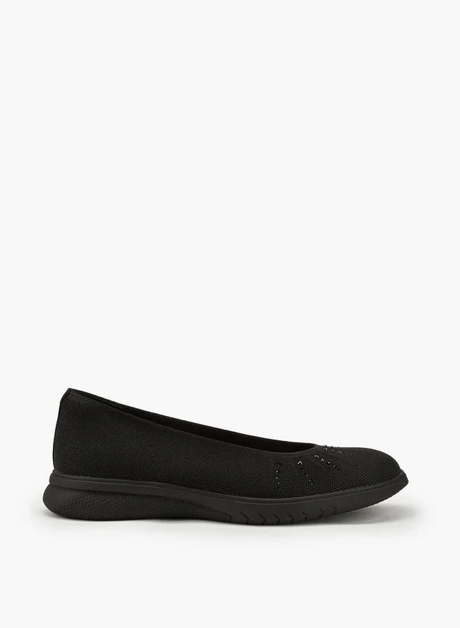 Womens Textured Slip-On Ballerina Shoes With Block Heels