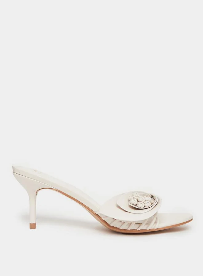 Beige Stiletto Heel Sandals with Floral Detail