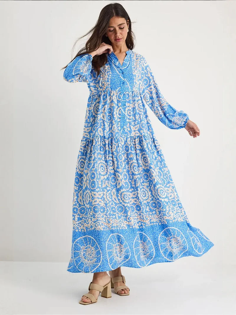 BDART Floral Maxi Dress with Crew Neck and Button Closure