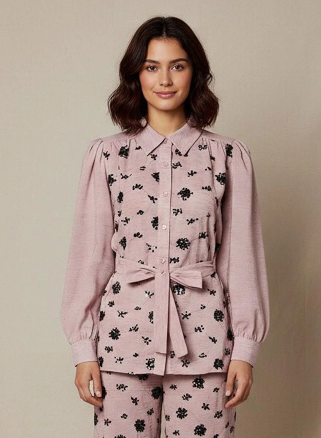 Belted Shirt with Sequins