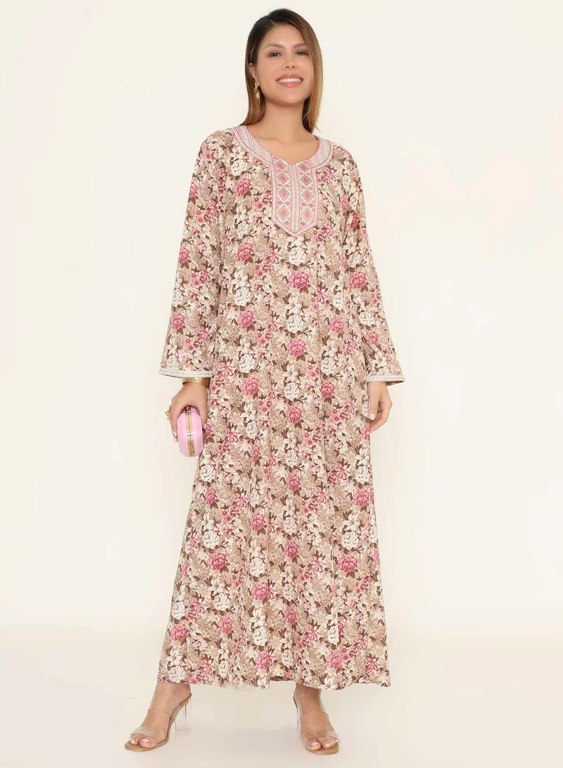 Comfortable & Stylish Arabic Jalabiya | Floral Maxi Dress