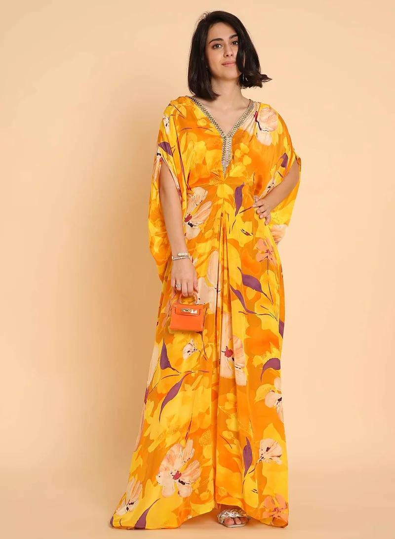 Vibrant Yellow Floral Arabic Jalabiya - Elegant Jalabiya Design