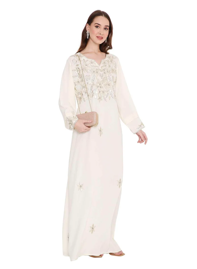 FLORAL PRINTED WITH SMALL STONE WORK ON EMBROIDERY STYLISH FARASHA JALABIYA DRESSES
