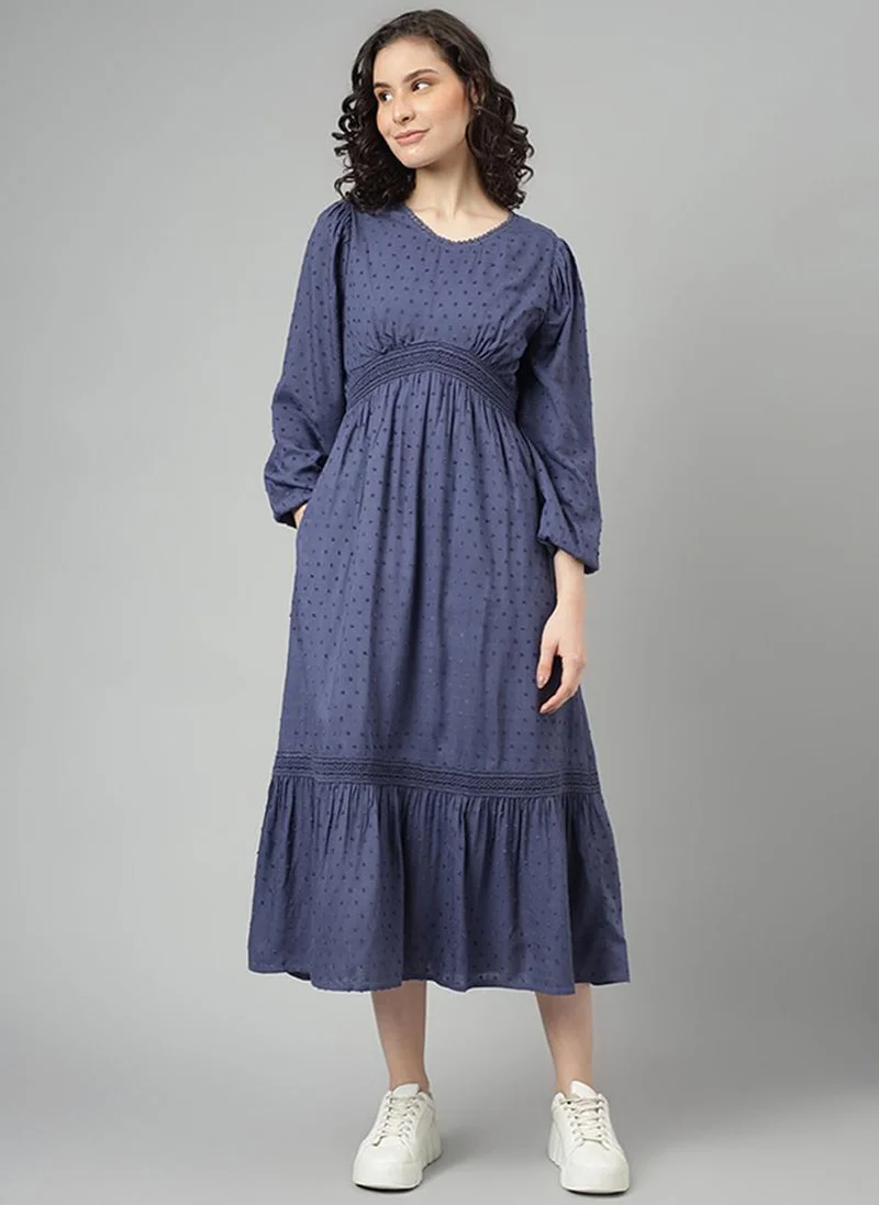 Textured Long Sleeve Crew Neck Maxi Dress