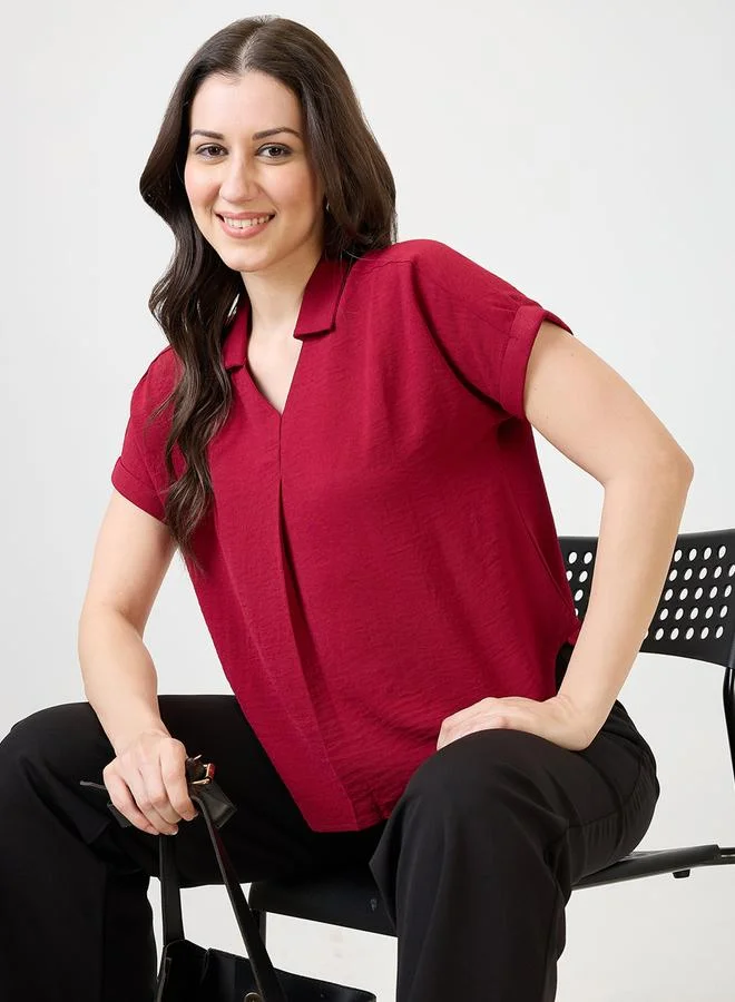 Styli Wrap Top with Shawl collar and Balloon Sleeves