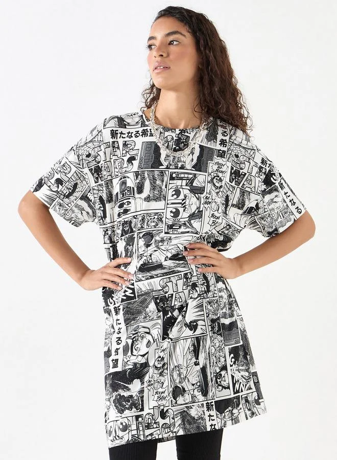 Peanuts Print Crew Neck T-shirt with Short Sleeves
