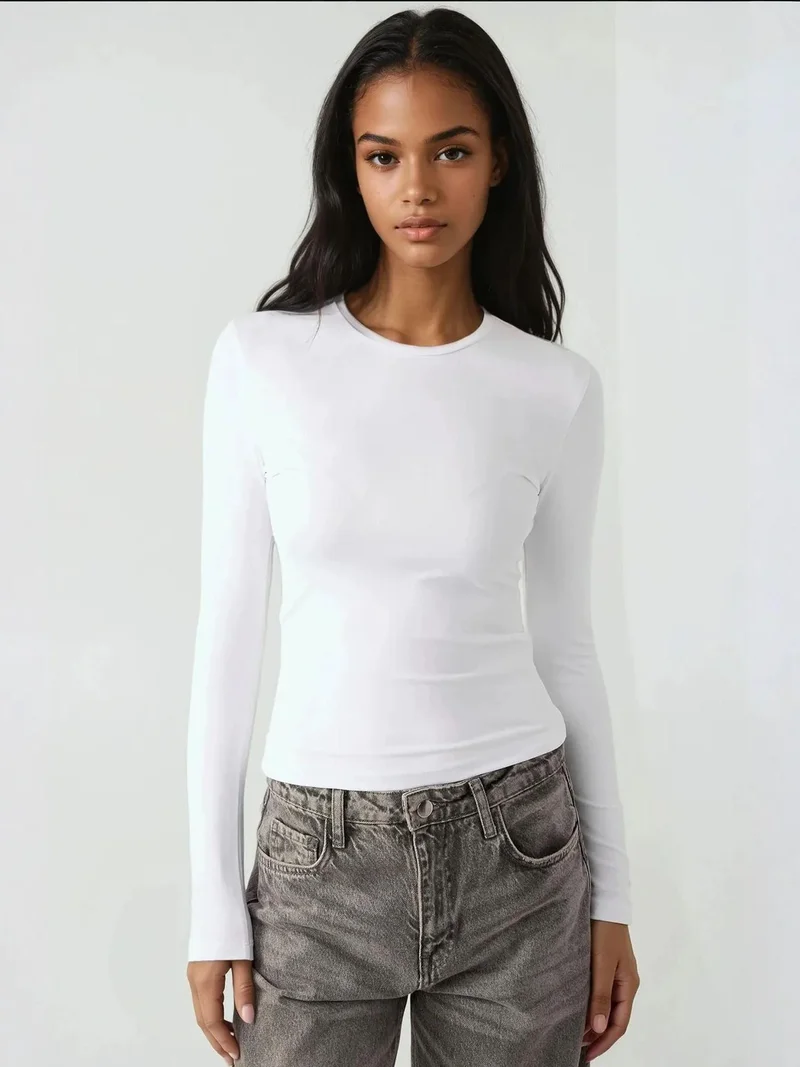 Textured Crew Neck Long Sleeve Slim Fit Top
