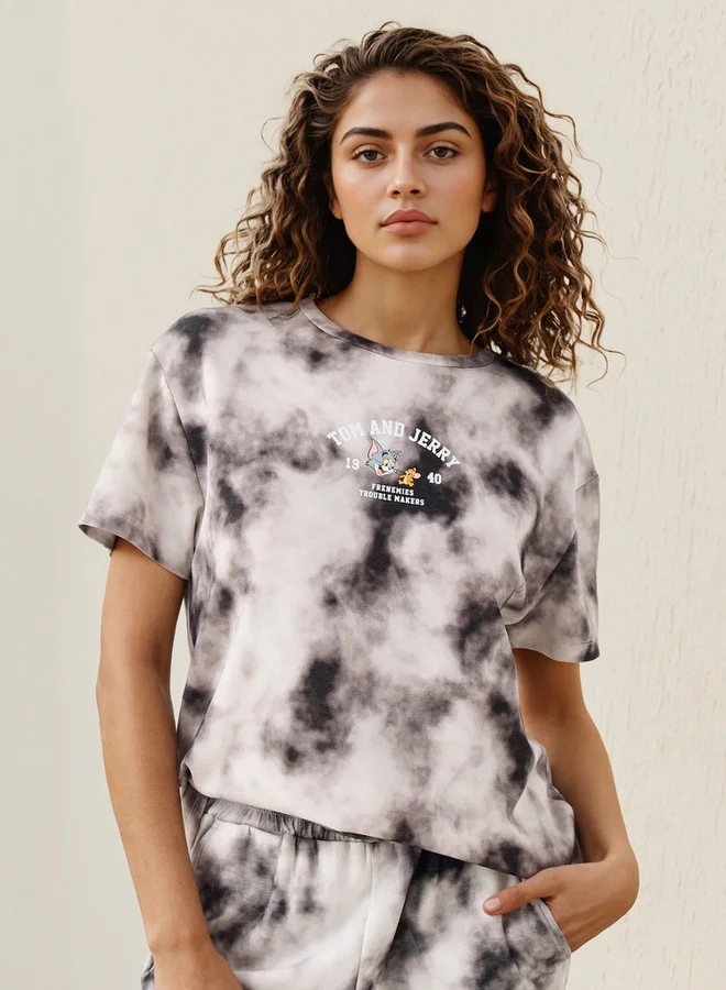 Peanuts Print Crew Neck T-shirt with Short Sleeves