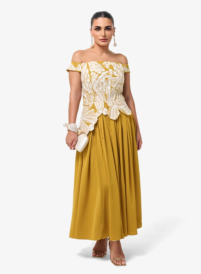 Off Shoulder 3D Floral Detail Bodycon Dress