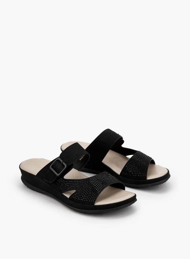Detailed Rhinestone Embellished Strap Mid Heel Sandal