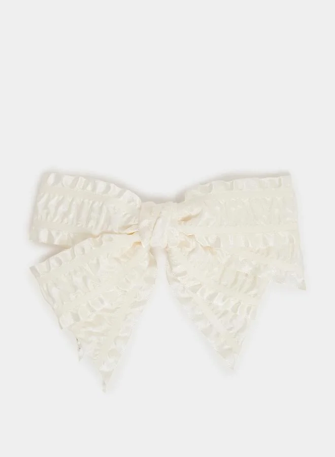 Oversized Lace Bow Hair Tie with Faux Pearl Detail