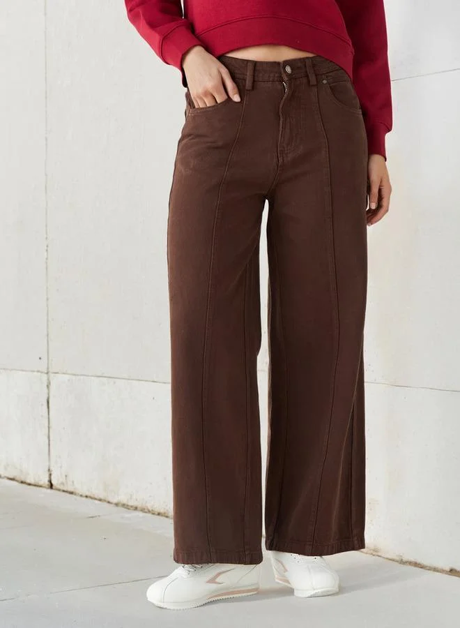 Styli Women Pintuck Detail Wide Leg Jeans