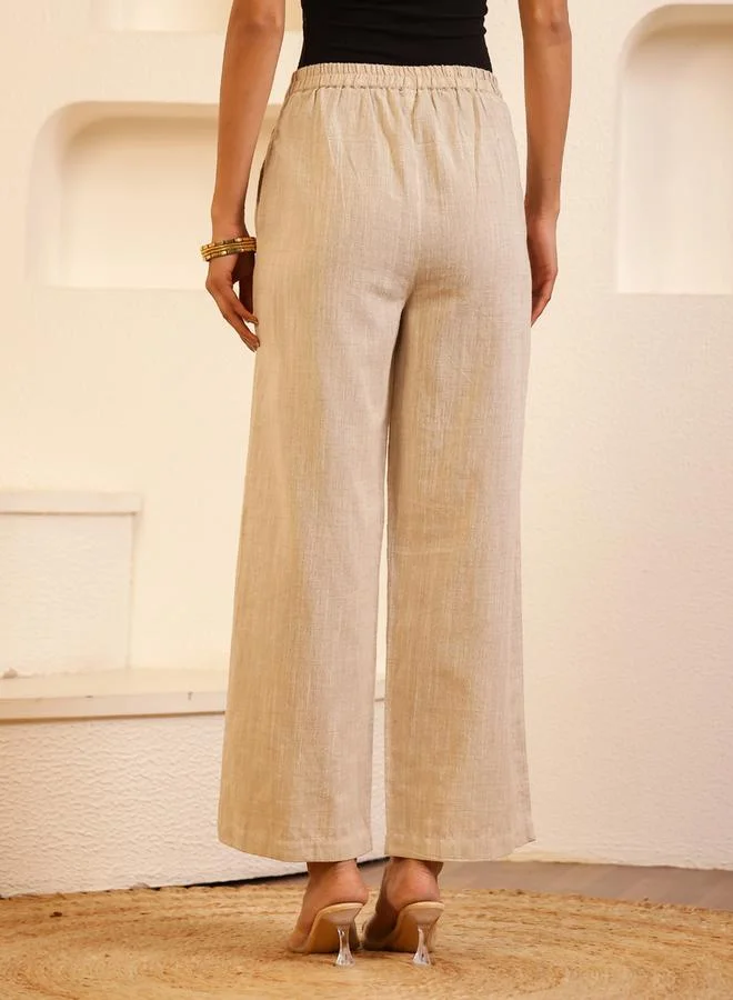 Elegant Beige Wide Leg Trousers