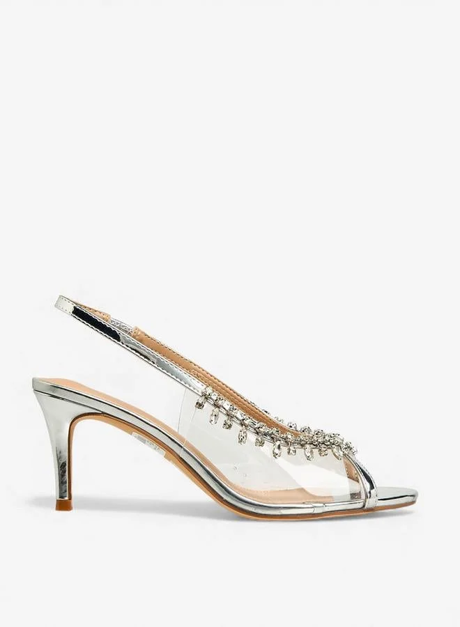 Diamante Clear Pointy Sling Back Pump
