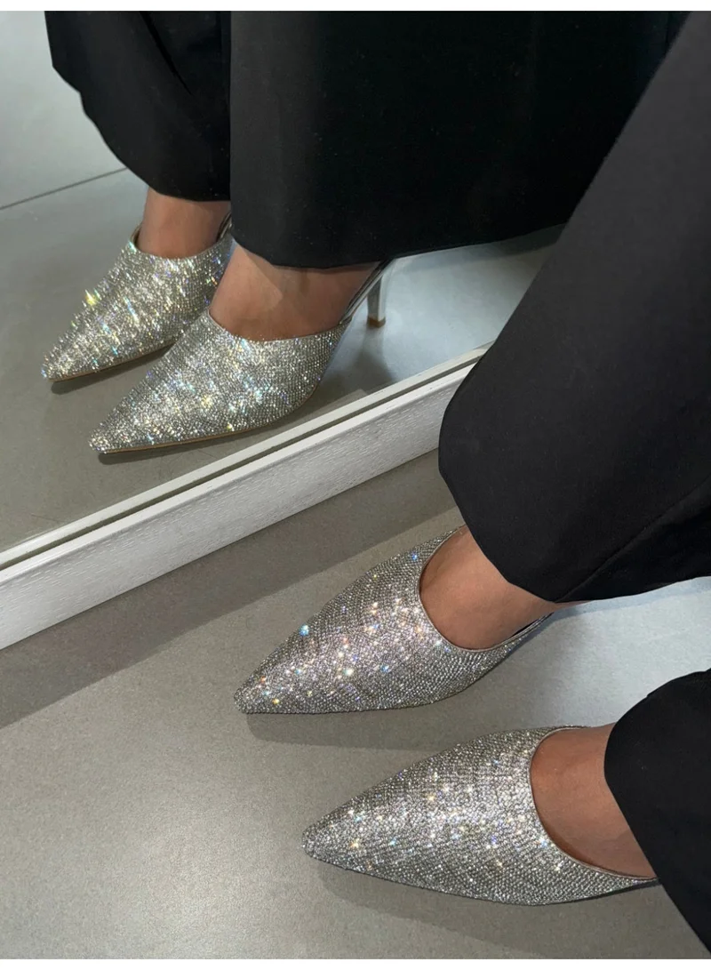 CROWN Silver Glittery Heels for Women 3 Inch Perfect for Weddings and Parties
