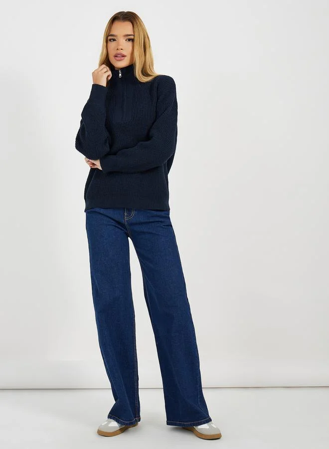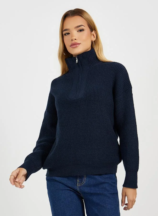 ستايلي بلوزة محبوكة بنصف سحَّاب غلق وقصة عادية