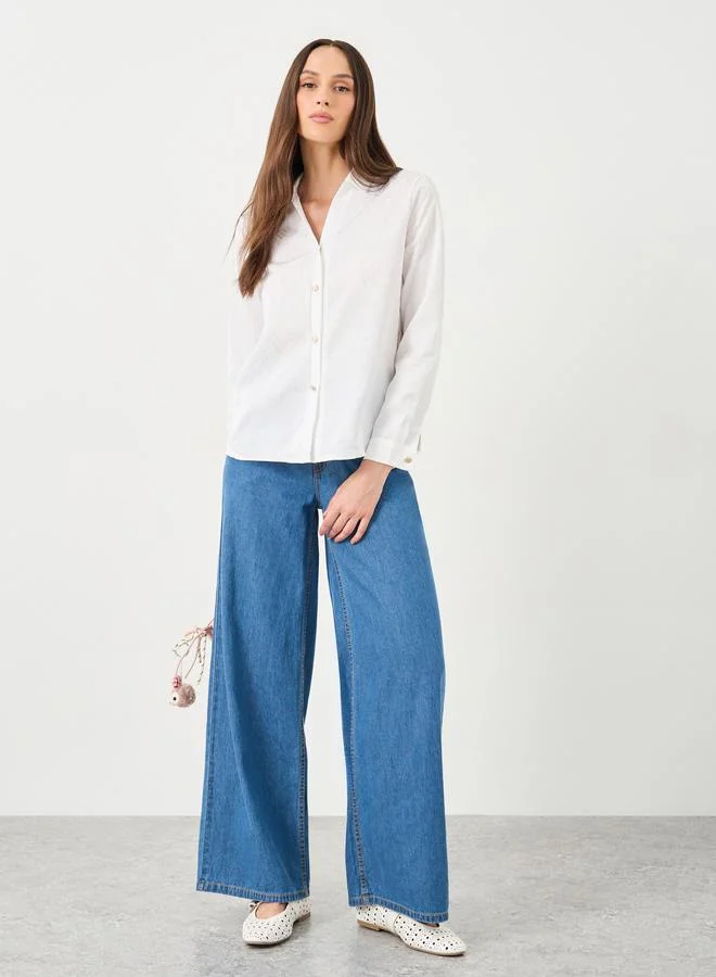 ستايلي قميص بأزرار بأكمام طويلة سادة
