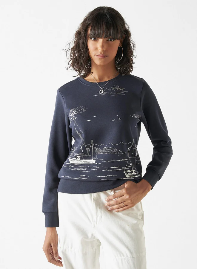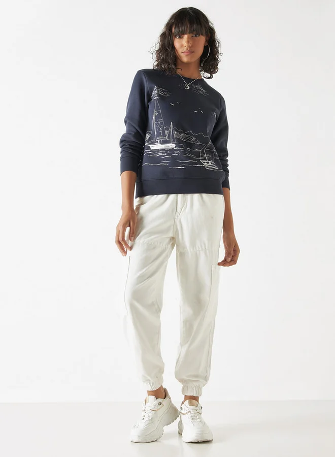 سويت شيرت بياقة ضيّقة وأكمام طويلة وطبعات جرافيك من لي كوبر