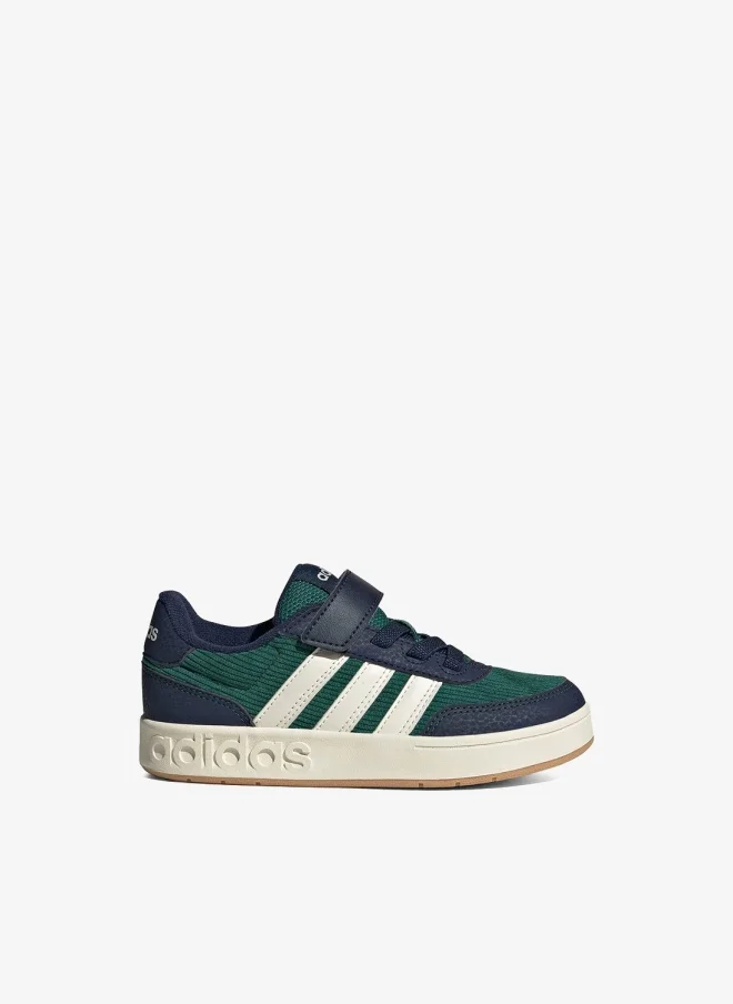 The adidas Breakbase Shoes bring a modern look to a classic yet sporty design. With a synthetic leather upper and rubber outsole, these shoes are built to keep up with kids on the go. Stretchy laces with a strap that goes over the top make them easy to step into and fasten, so kids can get going faster.