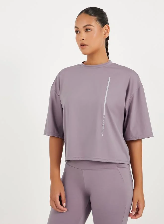 ستايلي اكتيف قميص قصير بأكمام قصيرة مخطط بنص مطبوع من جينسباير إيديشن