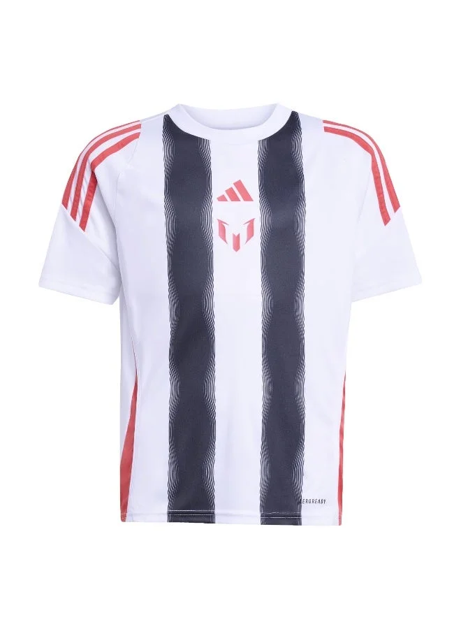Lionel Messi makes the extraordinary look easy. Created for juniors who want to raise their own game, this adidas training jersey employs moisture-managing AEROREADY to keep you comfortable through every drill. A Messi logo on the chest shows your dedication to following in the footsteps of football's greatest.