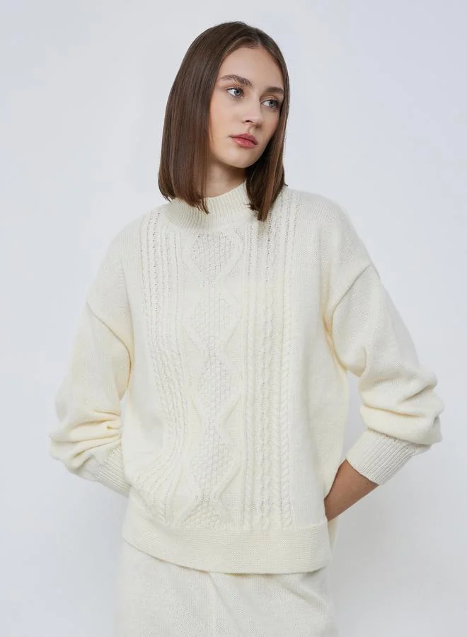 ستايلي سويتر محبوك بحياكة كابل بقصة عادية