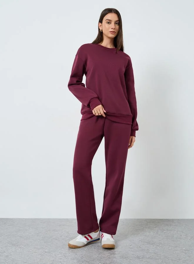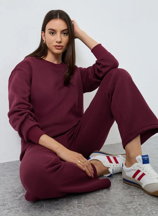 طقم منسق من جوغر وسويت شيرت سادة بقصة عادية