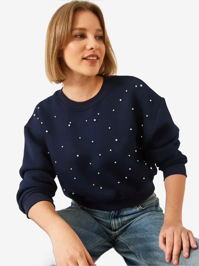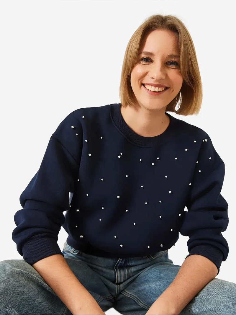 Elevate your casual wardrobe with our Patterned Crew Neck Pullover with Pompom. This relaxed-fit sweatshirt is made from soft cotton knitting and features a trendy pattern that sets it apart. The crew neck and long sleeves provide comfort and warmth, making it a perfect choice for cooler days. Whether you’re lounging at home or out and about, this pullover adds a stylish twist to your look. Easy to pull on, it’s the ideal blend of fashion and functionality for any adult woman or girl.