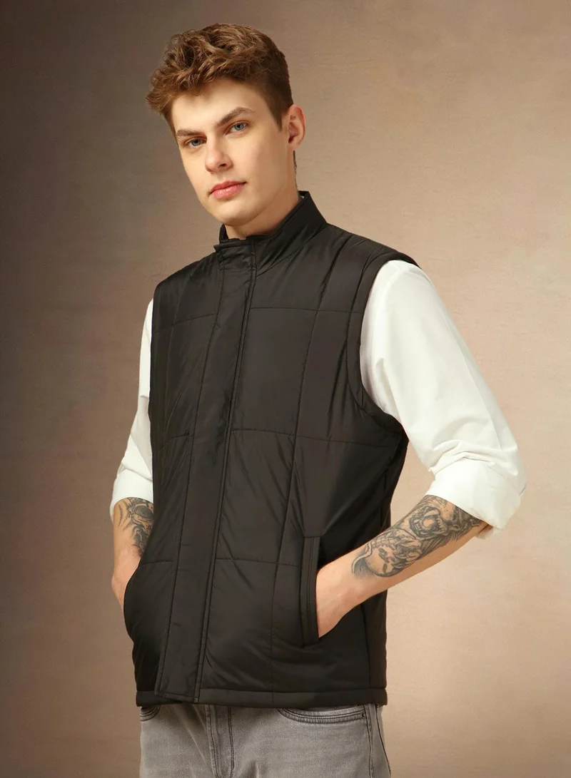 Dennis Lingo is where modern elegance meets everyday comfort. Best known for its sharp-fitting shirts, this brand brings you timeless wardrobe staples in essential and trend-forward colors. With a focus on quality craftsmanship and sleek design, Dennis Lingo creates styles that elevate your everyday look without ever trying too hard.This Regular Fit Jacket is crafted from premium 100% Polyester fabric with a Woven weave and Solid pattern. It features a Zipper closure. It has a Mock Neck collar. It comes with Sleeveless sleeves. The Regular fit ensures comfort while enhancing your natural shape. 100% Polyester fabric keeps you feeling fresh and comfortable all day long. The Solid pattern adds a stylish element to your wardrobe. Its Zipper closure offers both function and a polished finish. Perfect for those who value style and comfort.