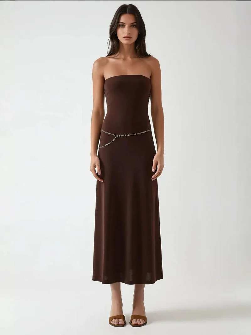 Introducing the Basic Strapless Midi Dress, a perfect blend of elegance and comfort. Designed for the modern woman, this stylish dress features a flattering wrap fit and a strapless neckline, making it ideal for various occasions. Made from high-quality elastane and polyester fabric, it offers a comfortable fit while showcasing your silhouette beautifully. Whether you're dressing up for a night out or enjoying a casual day, this midi dress is a versatile addition to your wardrobe. Elevate your style with this must-have dress today!