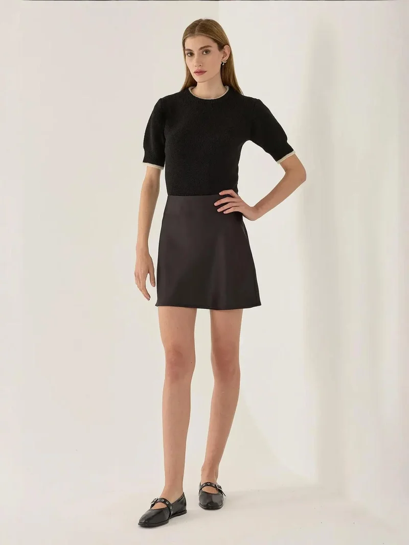 Elevate your wardrobe with our Satin Solid Mini Skirt. Crafted from a blend of polyester and elastane, this skirt offers both comfort and style. The straight fit silhouette accentuates your figure, while the high waist design provides a flattering and trendy look. Perfect for pairing with a variety of tops, this mini skirt is a versatile staple for any outfit. Dress it up or down for any occasion and embrace a chic, fashionable vibe.
