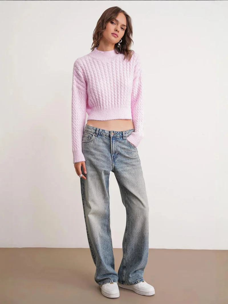 كنزة قصيرة بنقشة ضفائر محبوكة من ميكسراي