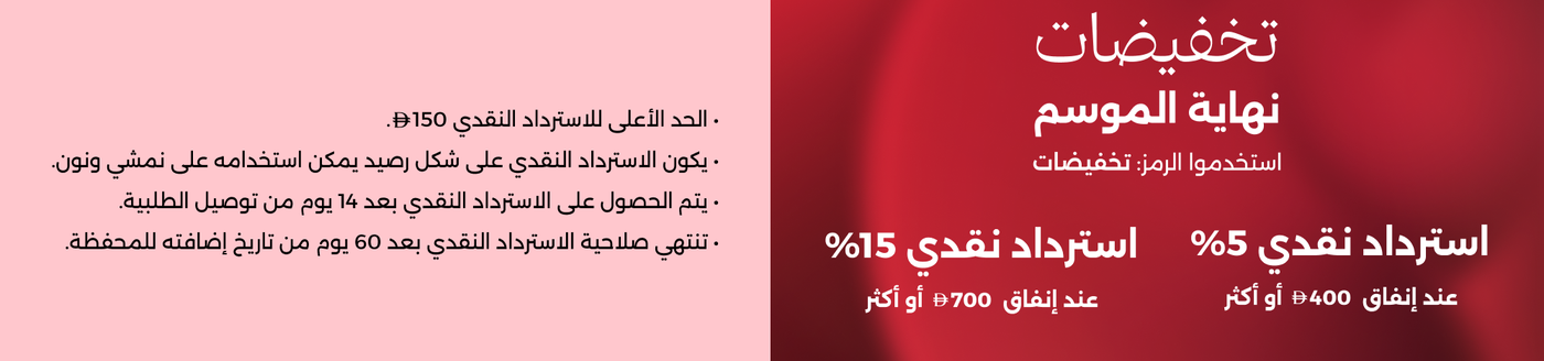 خصم حتى 80% + استرداد نقدي حتى 15% للنساء