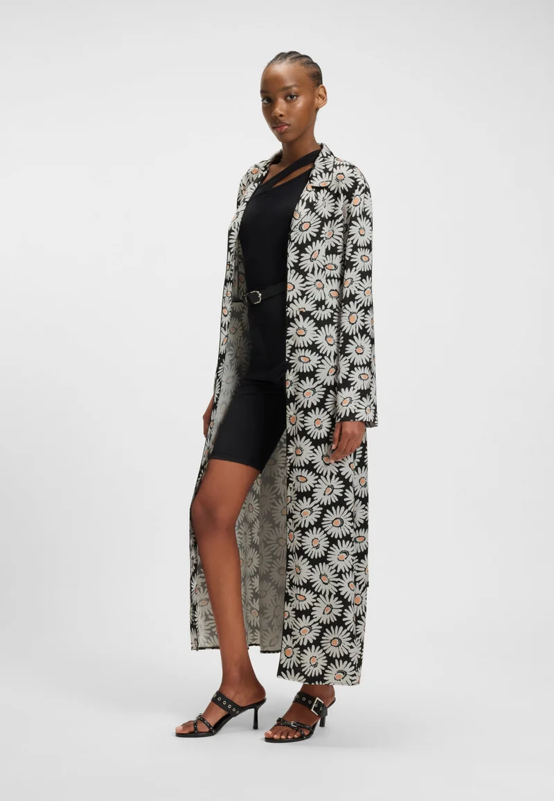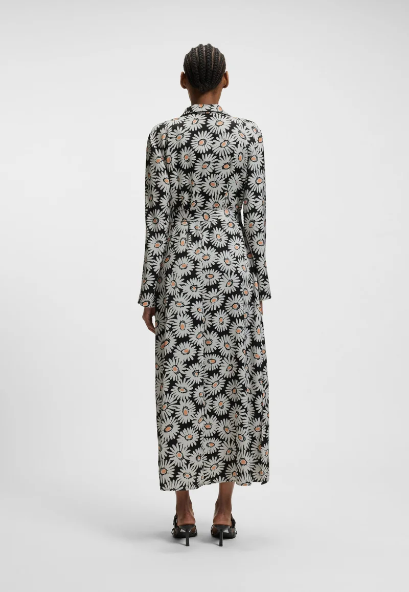 Daisy-print shirt dress with tie beltWith side slits for easy movement, this HUGO Womenswear shirt dress features a retro-inspired print and piping details. Tie belt for a cinching effect.Regular fit, Fastening top: Belted closure, Long sleeves, No cuffs, Pockets top: Seam pocket, No vent, Side slit, Unlined, Fit back length: 135 cmMaterial Composition51% Polyester (recycled), 49% PolyesterFit & MeasurementModel wears size: 36Height: 176Waist: 60Bust: 76Hips: 88Care InstructionWashing Type: Machine wash cold gentle.Bleach: Do not bleach.Iron: Iron low heat.Dry clean: Dryclean P.Tumble dry: Do not tumble dry.Additional: Hang to dry