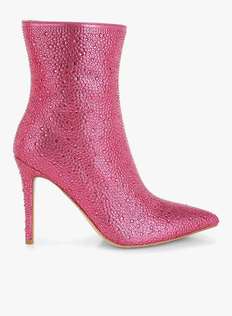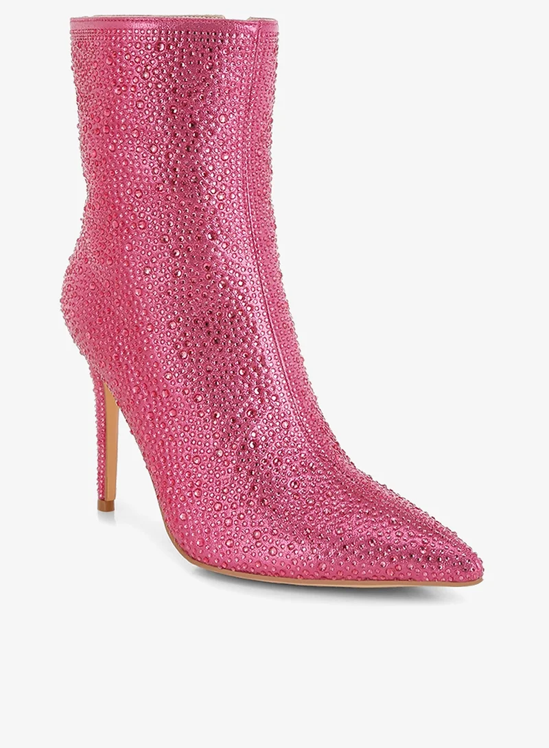 London Rag Rhinestones Embellished High Ankle Boots in Pink