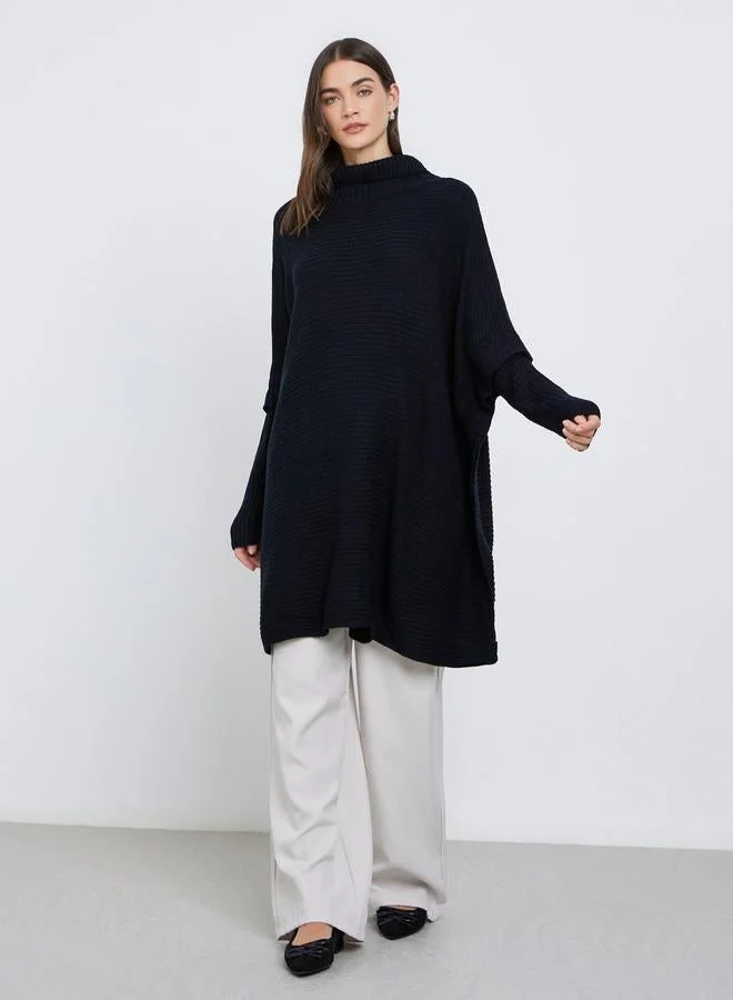 Stay cozy and stylish in this longline black jumper. A versatile and elegant addition to your wardrobe.