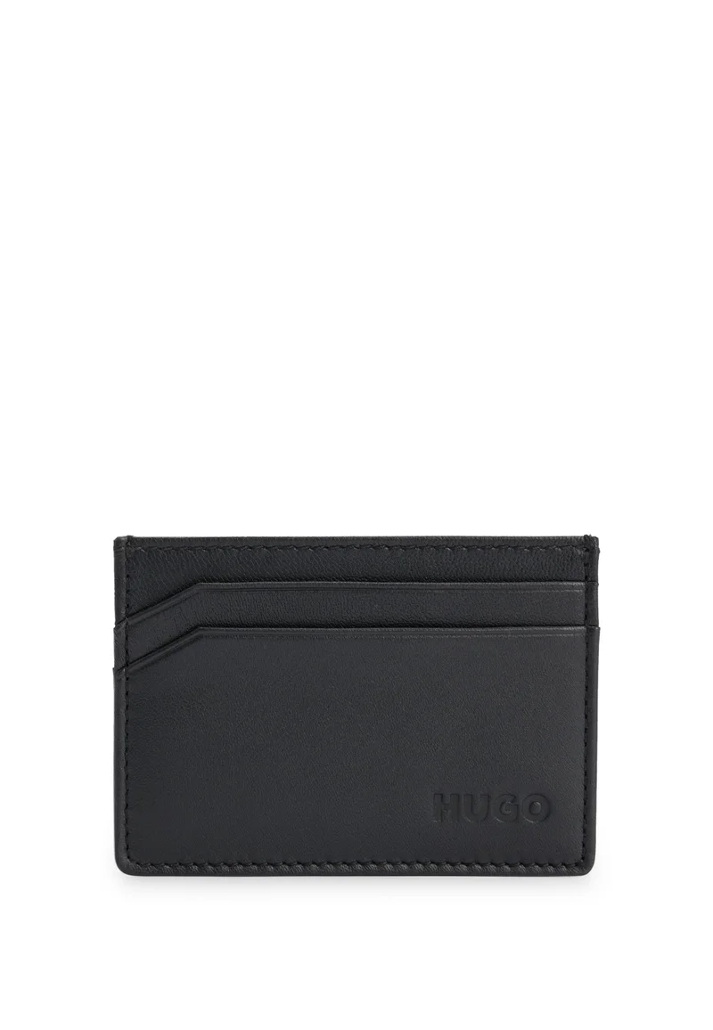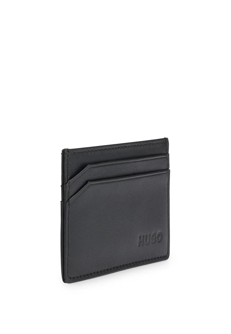Leather card holder with logoA sleek card holder in micro-grained leather with an embossed logo by HUGO. We continuously look for more responsible ways to produce and finish our products. A minimum of 60% of the leather used to make this product has been sourced from certified tanneries. Measurements: 7 x 10cmLength: 10,0 cm, Height: 7,0 cm, 1 inside open pocket, 4 credit card slots, Hardware finishing: Polished silver hardware, Fully lined, Embossed logo, Packaging: BoxMaterial Composition100% Sheepskin