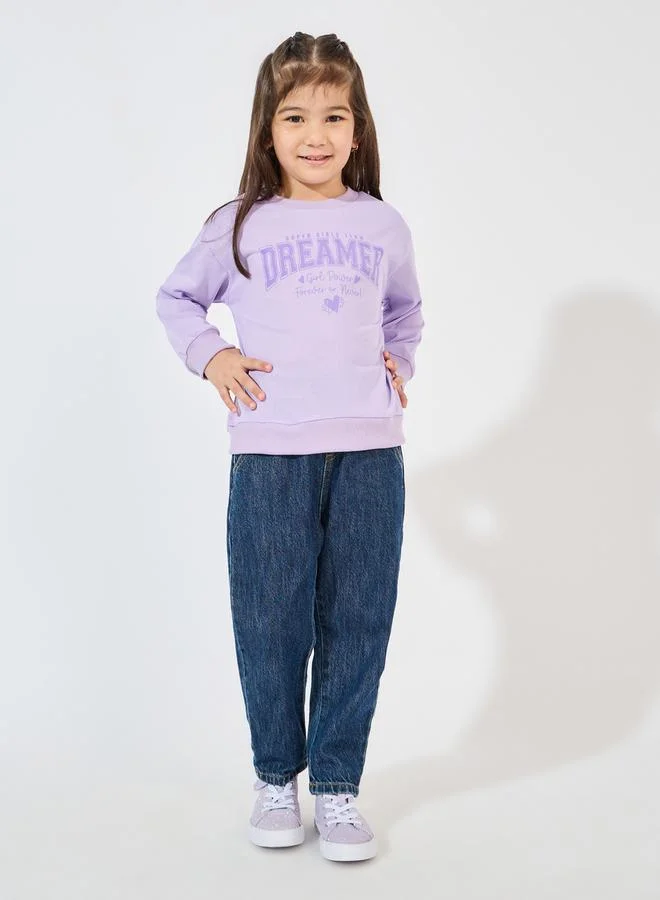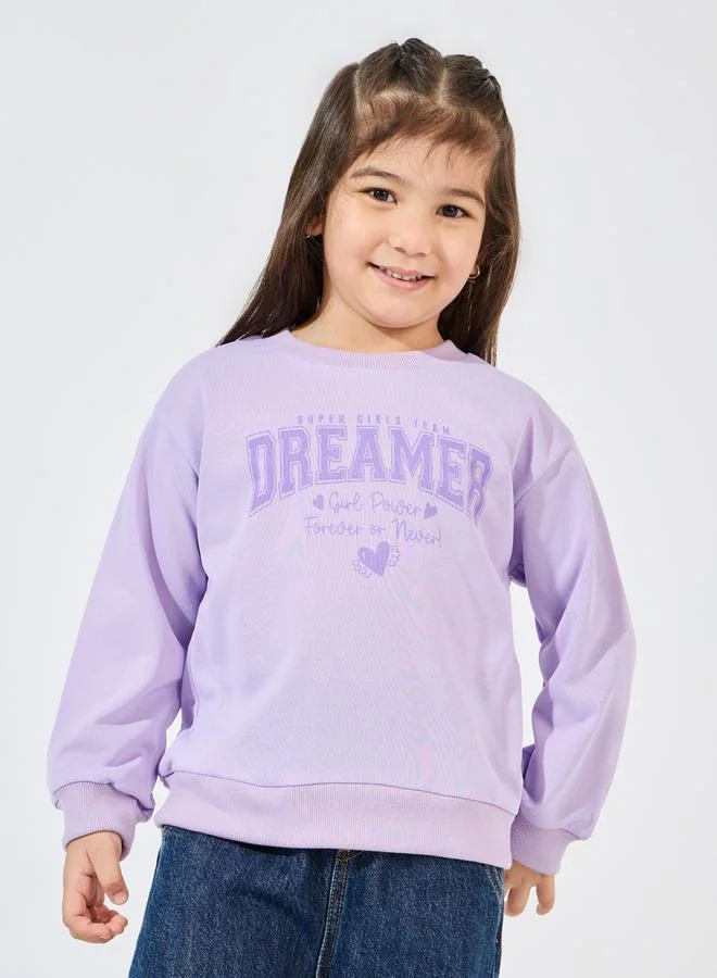 Styli Slogan Print Sweatshirt with Dropped Shoulder