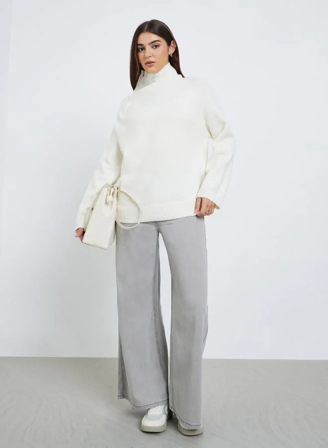 Styli Off White Regular Fit Sweater with Zip Detail