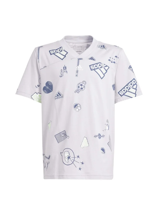 Express your brand allegiance in this loose-fit logo tee by adidas. Made of soft cotton, this tee lets kids rep their favourite brand loud and proud. Big, bold graphics celebrate sports and community, inspiring young fans to come together in their fandom. Whether heading to the park, the mall or just chillin' at home, this tee turns any activity into an event. The cotton in this product has been sourced through Better Cotton. Better Cotton is sourced via a chain of custody model called mass balance. This means that Better Cotton is not physically traceable to end products. Find out more here: https://bettercotton.org/who-we-are/our-logo/