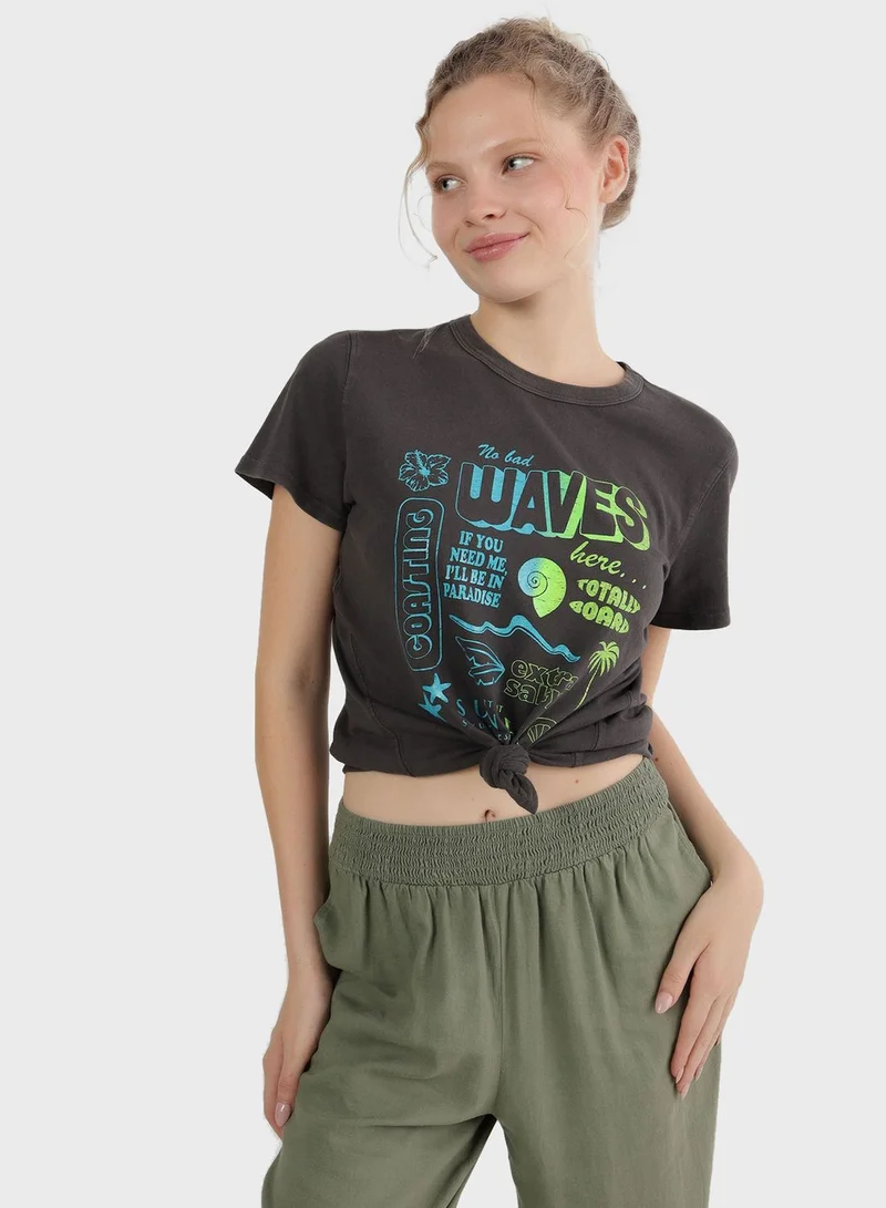 We took lived-in & loved to a whole new level! Your new comfiest tee with distressed deets & the cutest graphics!.