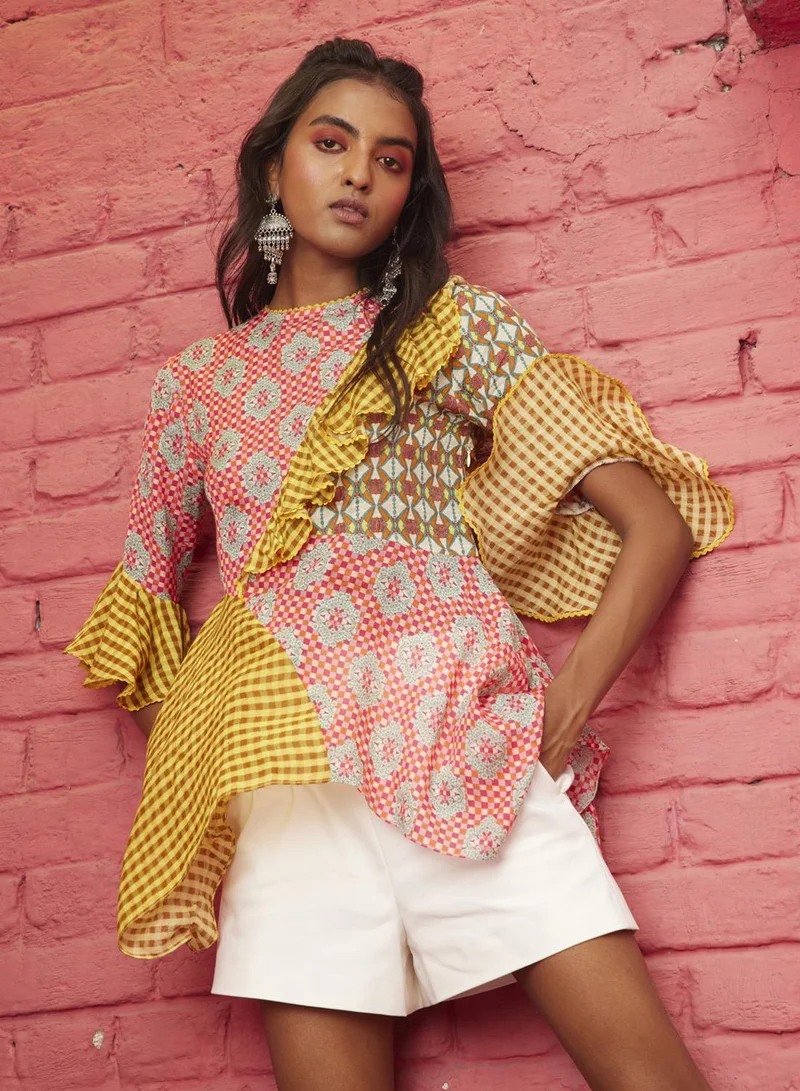 Bhanuni by Jyoti LEMONADE PINK & INDIAN RED TOP