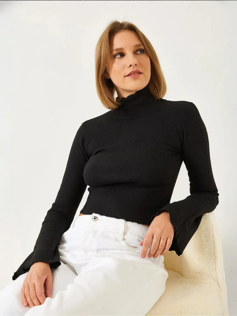 LUCCI Ribbed Half Turtleneck Crop Blouse