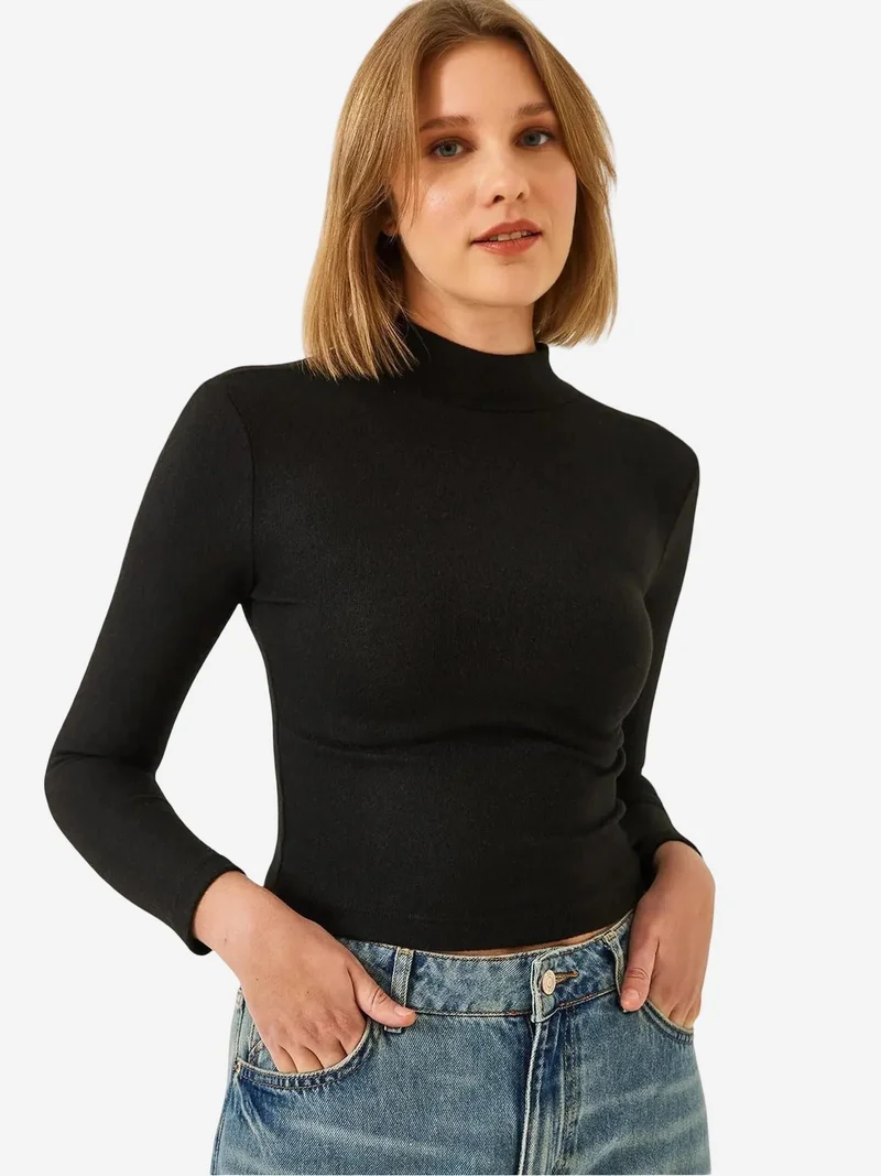 Bianco Lucci LUCCI Slim Fit Half Turtleneck Top