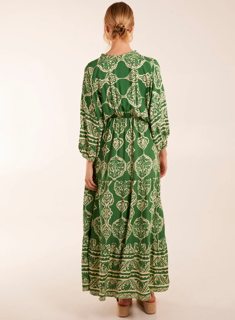 Aztec V-Neck Tiered Maxi Dress
