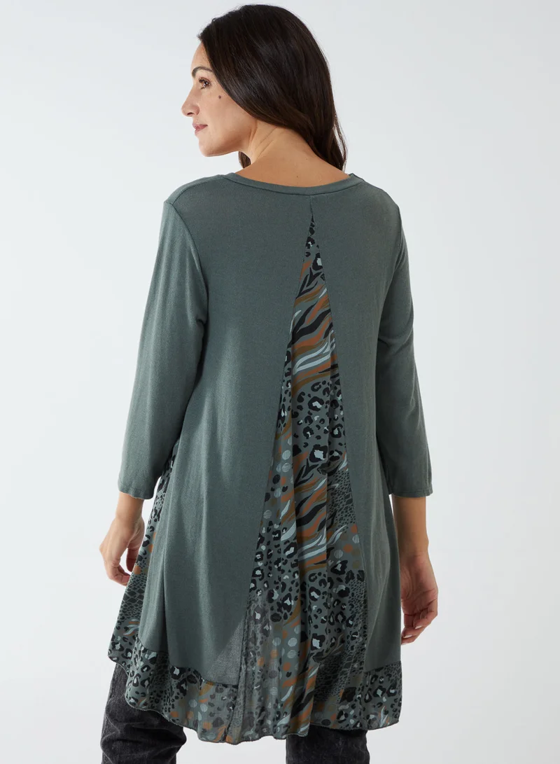 This high low animal back panel insert top is perfect for adding an unique style to your casual wardrobe