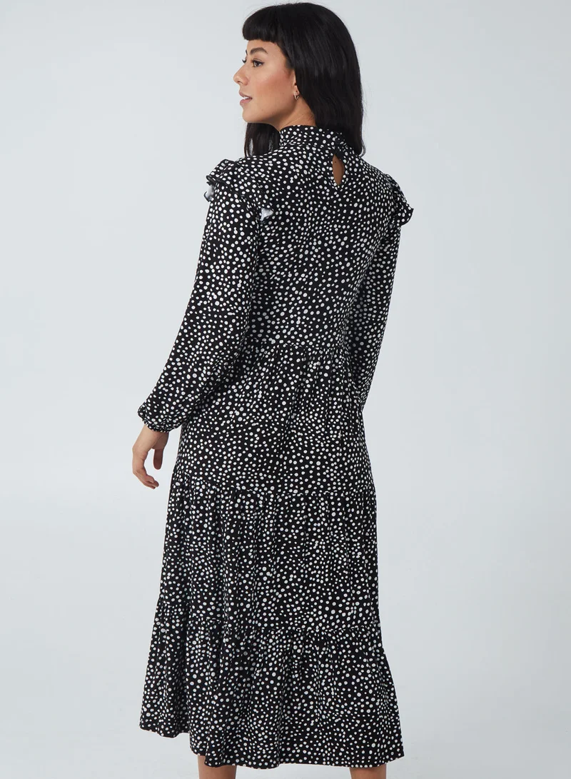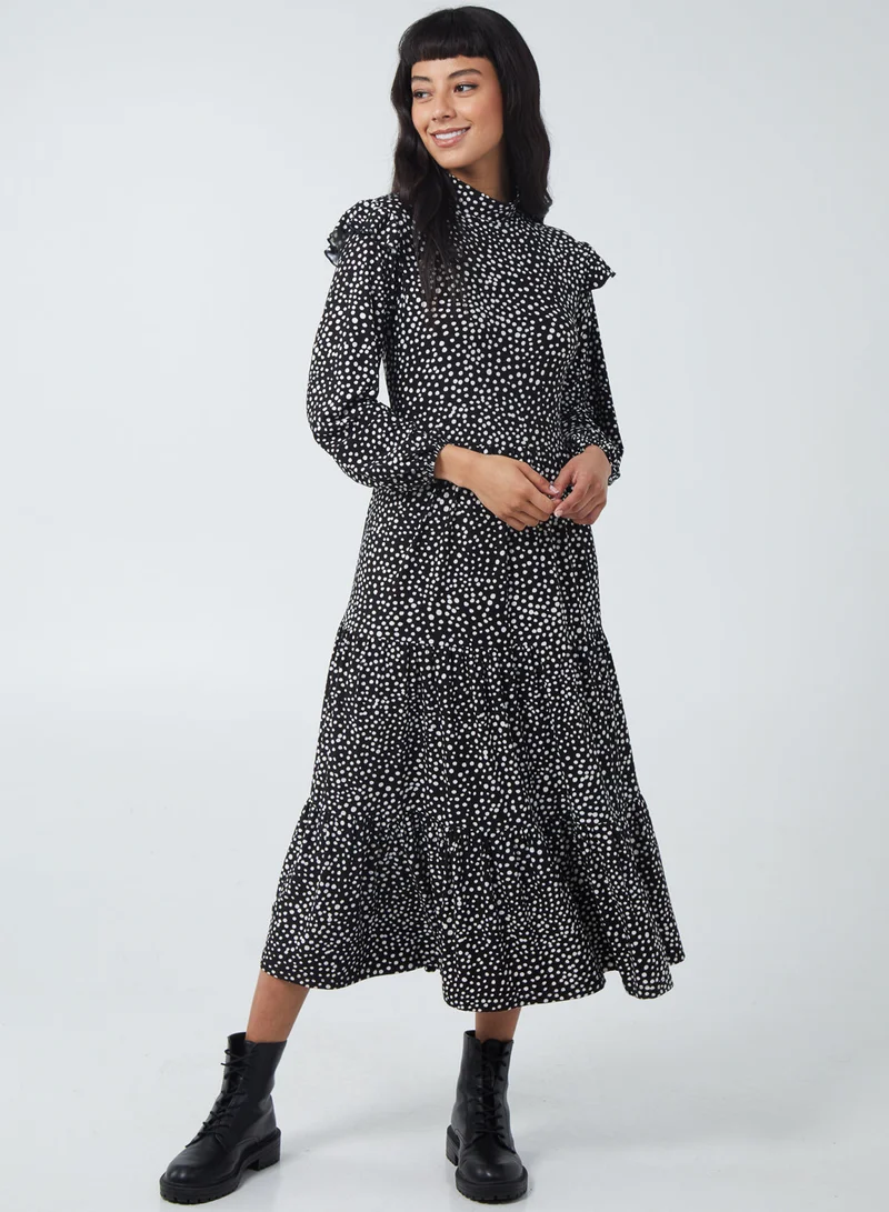 High Neck Frill Shoulder Tiered Dress